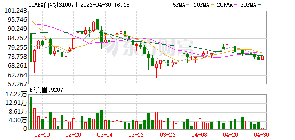 现货白银短线快速下跌 现跌超5%报75.59美元/盎司