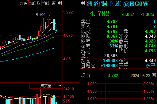 5月22日,纽约金价盘中跌破2400美元/盎司,23日价格继续走低,截止发稿,纽约金价报2363.70美元/盎司。