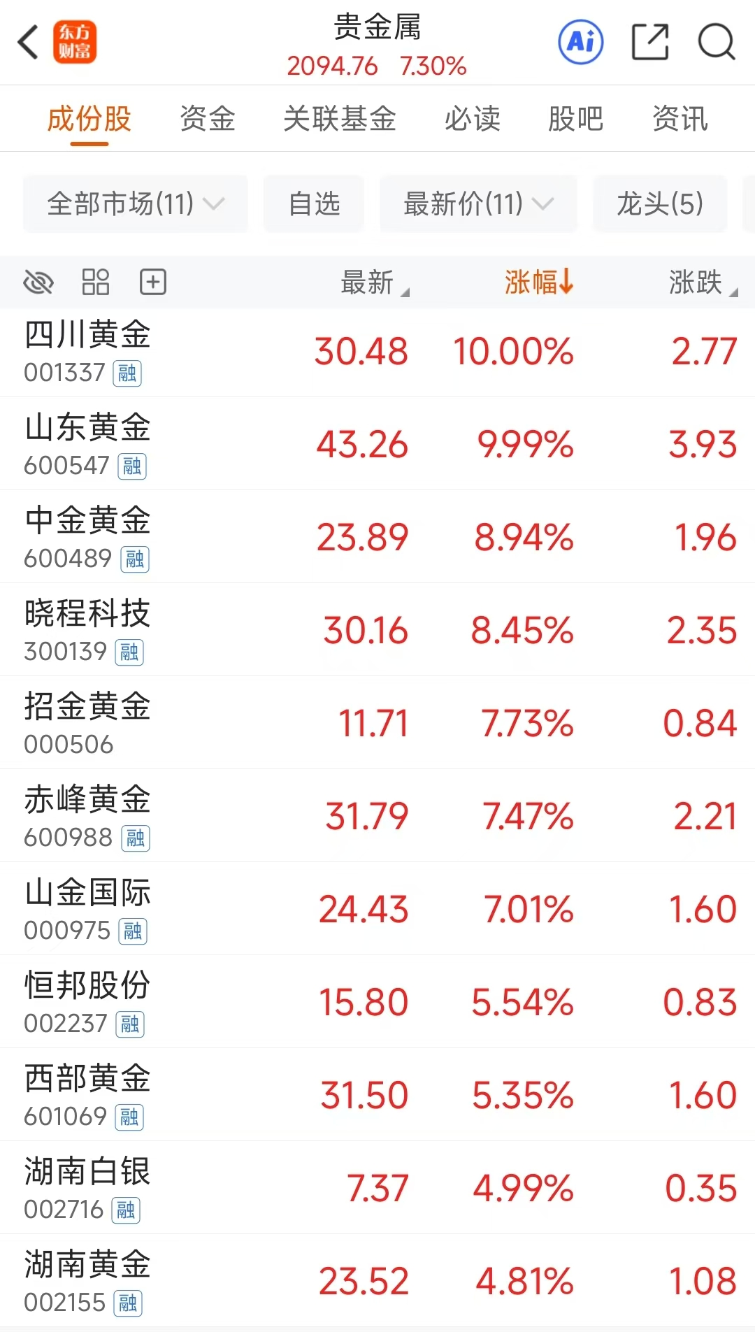 国庆后黄金市场狂飙,A股贵金属板块领涨,机构看好未来