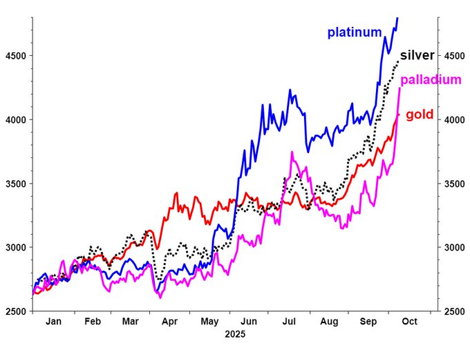 对此,盛宝银行大宗商品策略主管Ole Hansen撰文指出,黄金、白银和铂金的同步上涨,不仅关乎通胀对冲或利率预期,更反映出更深层次的趋势转变。