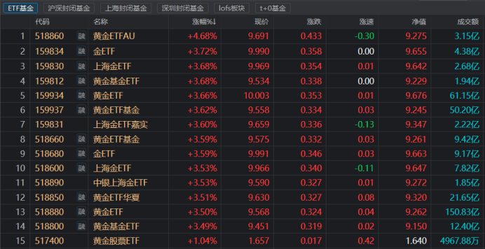 注:黄金系ETF今日集体大涨(截至10月17日收盘)