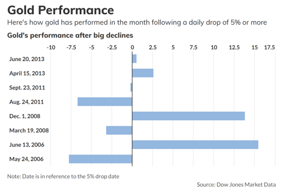 但回顾历史上的黄金暴跌——单日跌幅达5%甚至更大的情况——可以发现,此类下跌或许并不会产生持久影响,黄金长期趋势仍值得期待。