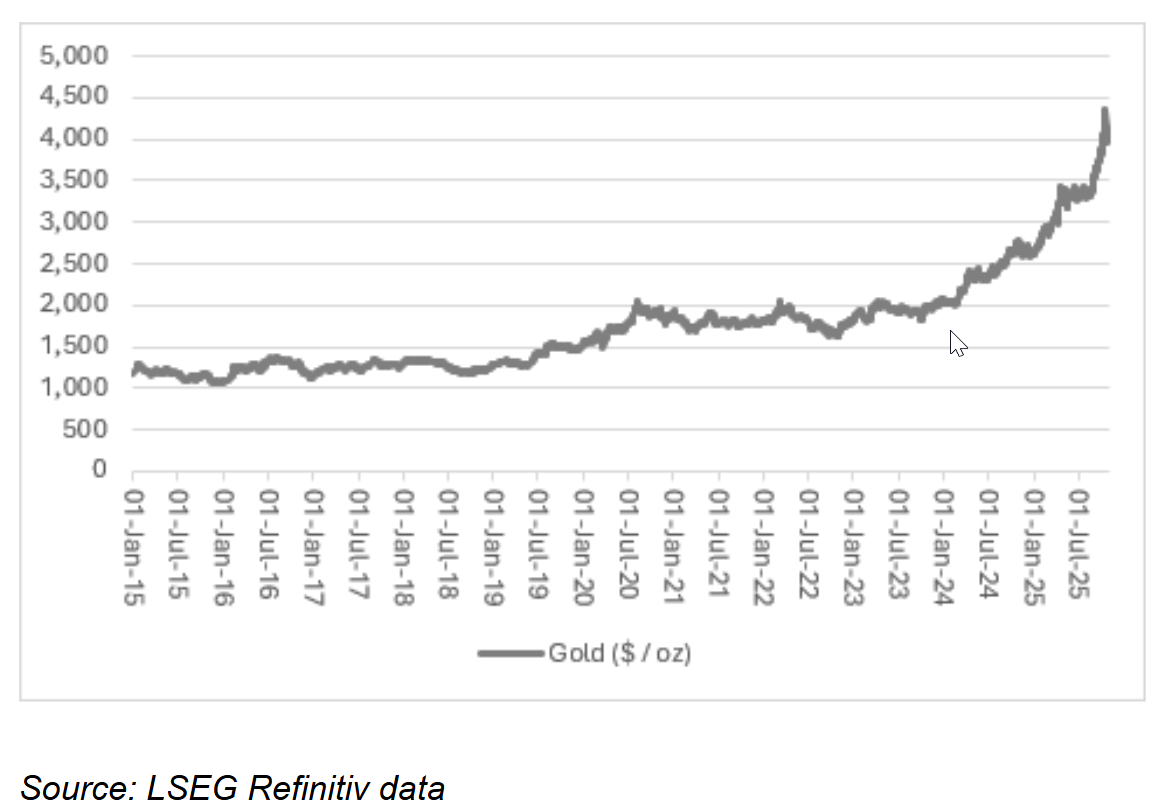 2015年之后,黄金开始悄然上涨,Mould指出,“远在新冠疫情、封锁措施、政府巨额补贴出现之前,更不用说关税和贸易战、中东新一轮动荡以及东欧战争了。”他补充道:“或许黄金传递的信息是,各国央行将发现,即使不是不可能,也很难从零利率政策和量化宽松政策中解脱出来,它们的资产负债表将继续膨胀——美联储今年秋季暂停量化紧缩政策(QT)表明,这一观点至今仍然适用。”