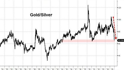 值得注意的是,随着银价近来大涨,金银比目前已快速下探至了65倍左右——基本上已处于了2014年以来的最低水平……