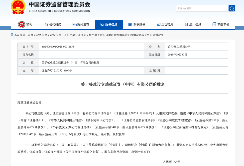 瑞穗证券(中国)获批设立,外资独资券商阵营再扩容