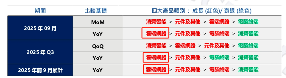 最新财报数据显示,云端网络产品(含AI服务器)在鸿海四大产品线中增长最为显著,受惠于AI云端产品拉货动能强劲,与其他产品线相比,云端网络产品的月度、季度和年度同比增长幅度均位居首位。鸿海AI业务(鸿海AI)发展势头良好,云端网络产品成为增长亮点。(小K注:鸿海的云端网络产品主要指与云计算、大数据相关的硬件及解决方案,核心产品包括AI服务器及工业网络设备)