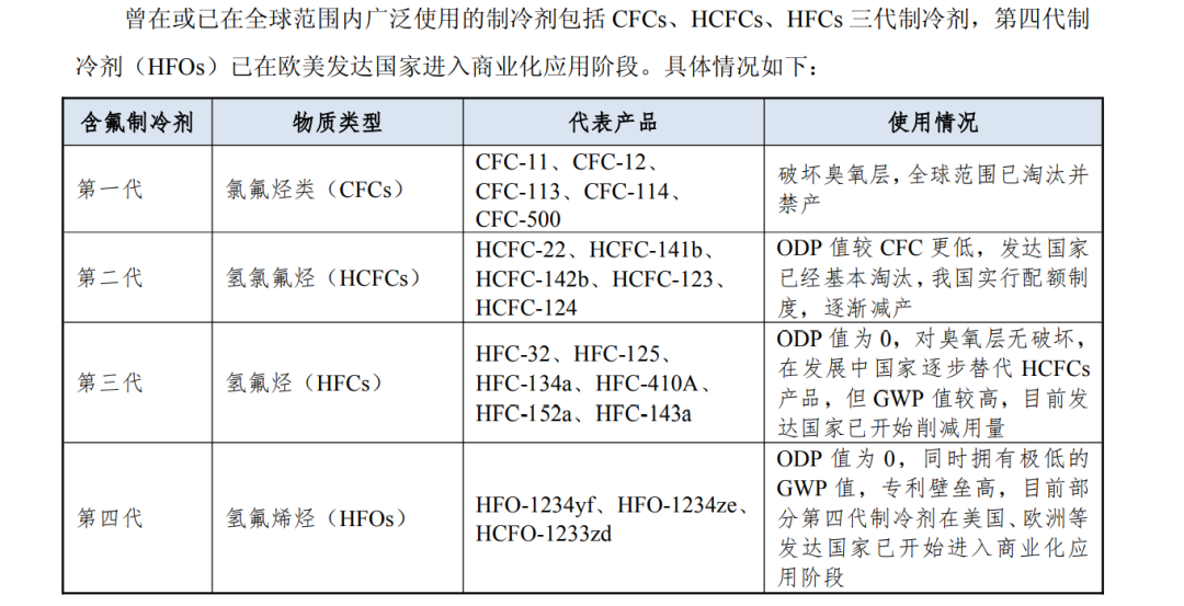 从下游需求看,目前国内制冷剂下游行业分布大致为空调(62.18%)、冰箱(4.78%)、汽车(9.87%)、其他(23.17%)。在消费升级、技术创新、政策推动等因素作用下,第二代氟制冷剂(HCFCs)在发达国家已经基本淘汰,我国实行配额制度,逐渐减产。第三代氟制冷剂(HFCs)在发展中国家逐步替代第二代氟制冷剂,目前发达国家已开始削减用量,氟制冷剂市场格局生变。