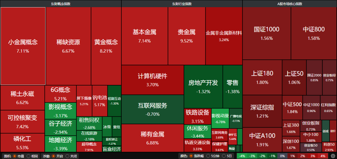 A股蓄势待发,稀土板块估值业绩双升,铜价金银走势强劲
