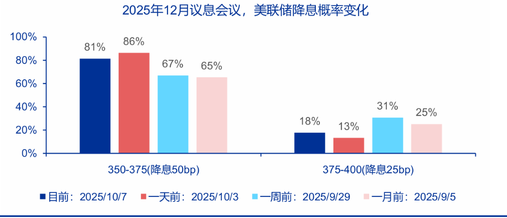 降息预期升温叠加供给冲击事件持续发酵,铜价向上突破。美国政府停摆叠加就业市场疲软,美联储降息预期升温,催化有色金属价格上涨。美国政府停摆,就业与通胀数据推迟,DOGE2.0或带来额外就业压力,倒逼美联储开启连续降息周期,叠加滞胀预期,我们的核心观点是:金银将继续走出长牛。降息预期升温,铜价、金银走势强劲。