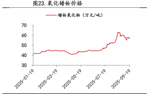氧化镨钕近期价格触底回升;近期重稀土价格、加工费开始上涨,我们认为与《暂行办法》落地、供改效果开始体现有关。涨价、供改兑现、供应扰动叠加板块战略属性提升,稀土板块将继续演化估值业绩双升。