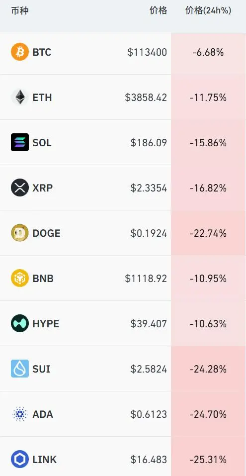 隔夜欧洲主要股指集体收跌,欧洲斯托克50指数跌1.69%,英国富时100指数跌0.87%,法国CAC40指数跌1.53%,德国DAX30指数跌1.68%,富时意大利MIB指数跌1.74%。加密货币全线大跌,比特币一度向下跌破110000美元,跌幅达9%,最近24小时全球共有近152万人爆仓,市场恐慌情绪蔓延。