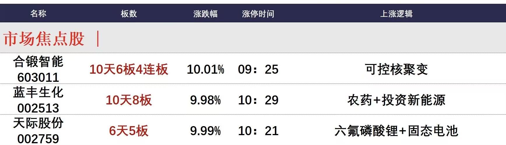 今日午盘A股市场全线活跃,全市场共37股涨停,连板股总数达11只,17股封板未遂,封板率为68%(不含ST股、退市股)。在热门概念板块中,可控核聚变概念股表现尤为突出,反复活跃成为市场焦点,其中合锻智能10天6板、安泰科技3连板,展现出强劲的上涨势头。同时,六氟磷酸锂概念股也表现不俗,天际股份6天5板、石大胜华5天3板,市场热度持续升温。此外,蓝丰生化上演“地天板”走出10天8板,更是为市场增添了一抹亮色。市场活跃度的提升,为投资者提供了更多交易机会。