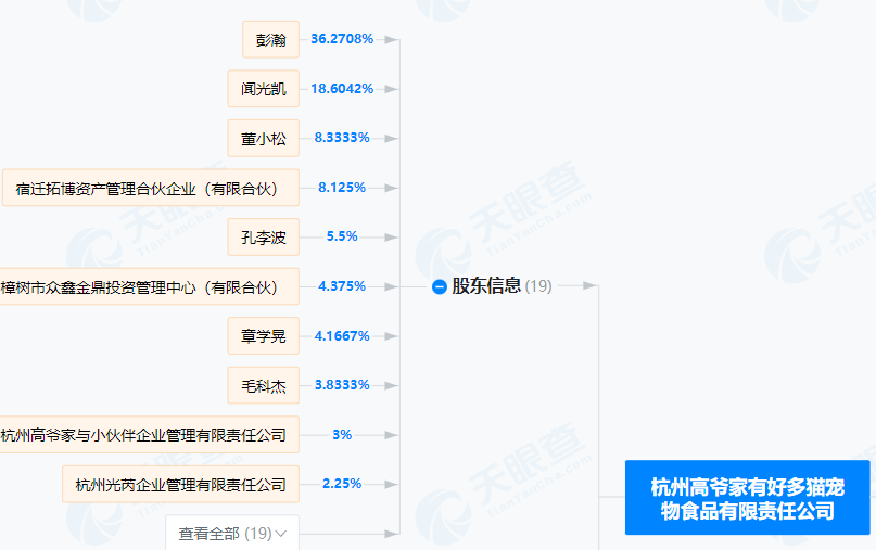 高爷家公司的第六大股东是樟树市众鑫金鼎投资管理中心(有限合伙),持股比例为4.375%,后者的控股股东是A股公司中宠股份。
