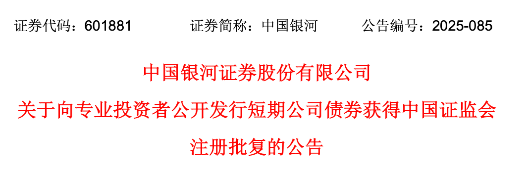 【导读】中国银河:发行不超过150亿元短期公司债券获得证监会批复,券商融资动态再引关注