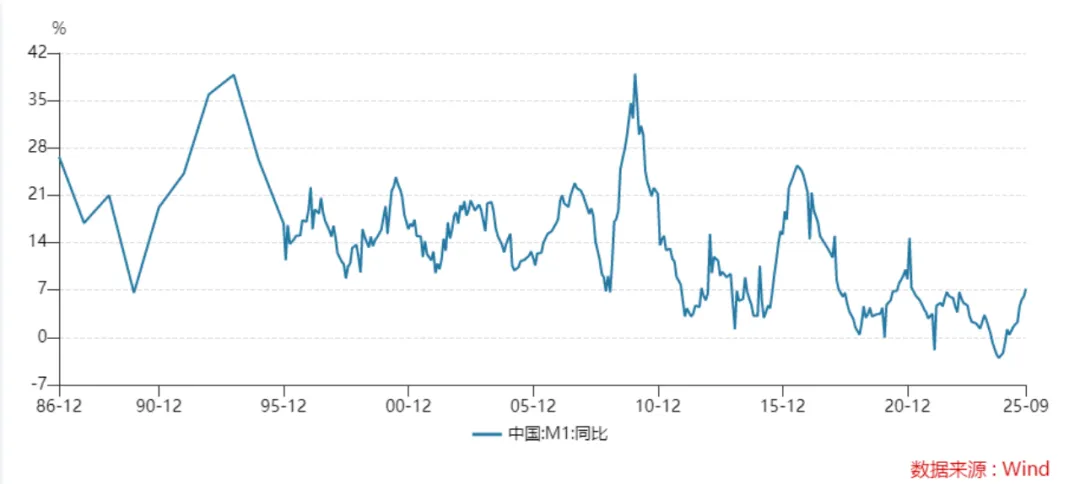 那么,M1的涨势能否持续?从年初以来的增量视角观察,2025年1—9月M1增1.82万亿,与2021—2023同期平均值1.79万亿较为接近(纳入个人活期存款)。而2024年同期这一数字为-4.44万亿,主要是因为当年的禁止手工补息推动大量存款从银行转移至理财,造成的M1低基数影响或持续至今年9月。