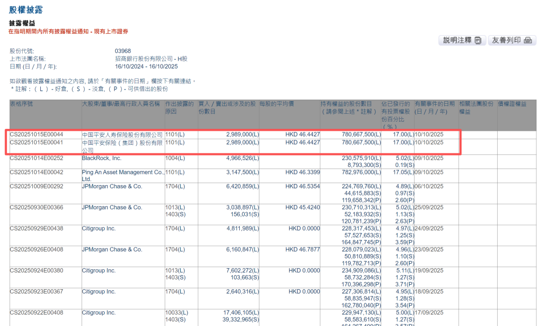 在银行股回调过后,险资持续加码。上海证券报记者近日统计发现,10月以来,中国平安及旗下子公司平安人寿买入招商银行H股、邮储银行H股,合计斥资约1.73亿港元。