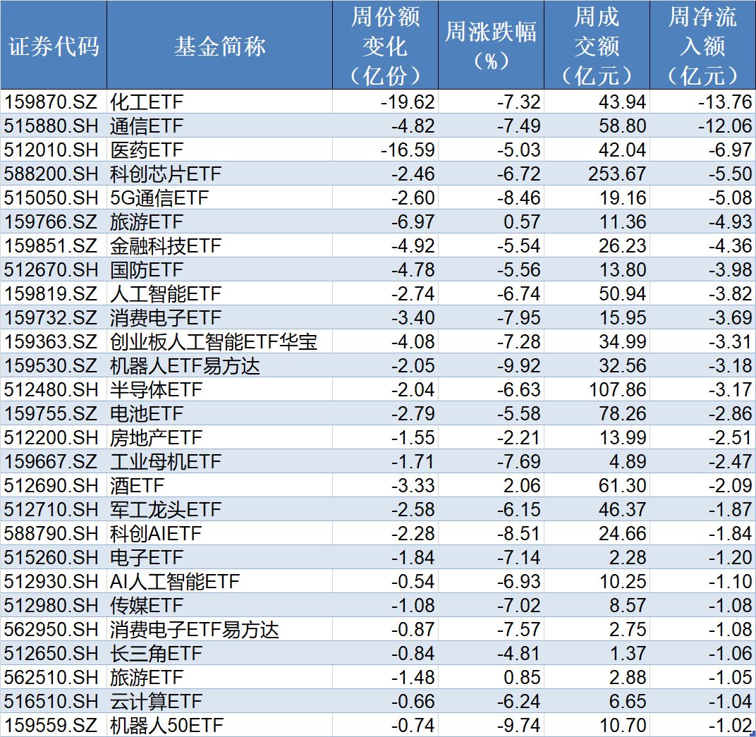 本周股指大幅调整,沪深两市股票型ETF和跨境型ETF合计净流入约494亿元,资金借道ETF入场态势显著。行业主题上看,银行、稀土等ETF被资金看好,而化工、通信相关ETF被资金抛售,市场资金流向呈现明显分化特征。
