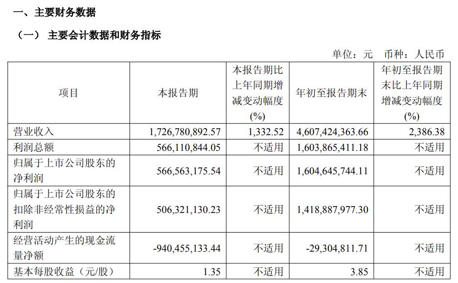 寒武纪科技10月17日发布重要财务公告,寒武纪在2025年第三季度表现出色,实现营业收入高达17.27亿元,与去年同期相比,增长率达到了惊人的1,332.52%;同时,归属于上市公司股东的净利润也达到了5.67亿元,基本每股收益为1.35元。而在前三季度,寒武纪业绩同样亮眼,实现营业收入共计46.07亿元,同比增长2,386.38%;净利润方面,归属于上市公司股东的净利润高达16.05亿元,基本每股收益为3.85元,这一系列数据充分展示了寒武纪在市场上的强劲增长势头。
