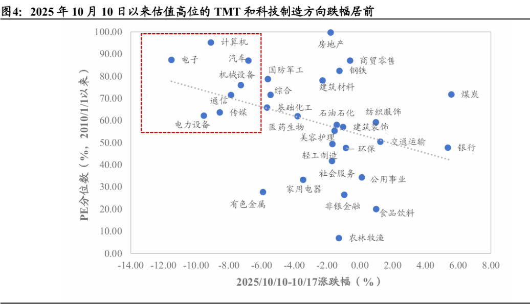 中金公司:关注三条投资主线,结合三季报业绩关注三条投资主线:1)三季报业绩亮点领域,例如黄金板块、受益于AI高景气的TMT板块、非银金融等。2)与经济周期和外部风险关联度不高的高景气机会,例如AI产业链,以及面向非美经济体贸易且海外产能布局充分的白色家电、工程机械和电网设备等。3)温和复苏环境下率先实现供给侧出清的行业,包括工业金属、锂电池、创新药、商用车、轨交设备和铁路公路等。