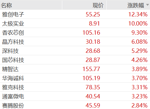 10月21日早盘,A股存储芯片概念集体走强,截至11:12,雅创电子涨超12%,香农芯创涨9.3%,太极实业涨10%,云汉芯城、普冉股份、江波龙等涨幅明显,存储芯片板块成为市场焦点。创业板指一度拉升涨逾3%。超硬材料、苹果产业链、存储芯片等方向涨幅居前,截至11:00,沪深京三市上涨个股超4100只,市场氛围热烈。