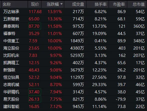 此外,工业机械板块盘中拉升,海立股份、中信重工、沈阳机床等多股涨停。万联证券研报指出,2025年上半年,机械设备行业整体经营环境良好,营收及归母净利润实现双增长。中国机械设备全球竞争力增强,海外市场份额增多。