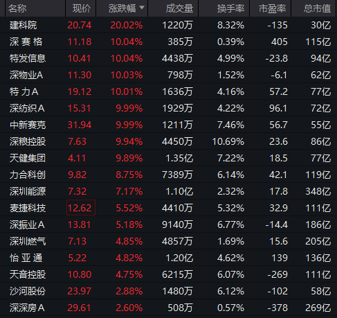 深圳本地股多股涨停