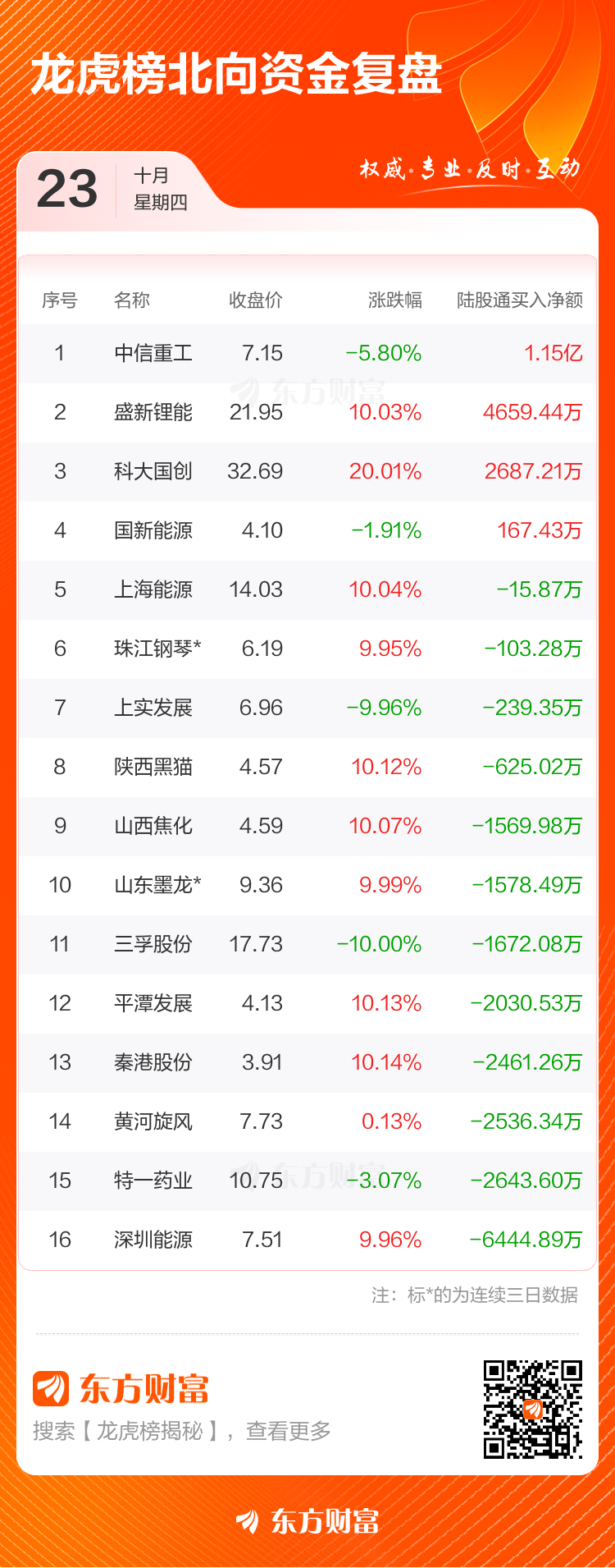 10月23日龙虎榜揭晓:56只个股上榜,科大国创净买入额居首