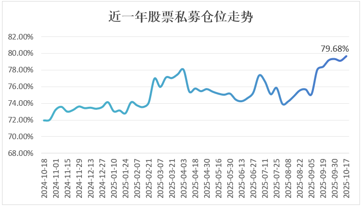 股票私募仓位创近一年新高。私募排排网数据显示,截至2025年10月17日,股票私募仓位指数升至79.68%,较前一周上涨0.55%,创近一年新高。从趋势看,自2025年8月以来,该指数累计上涨5.75%,加仓趋势显著。这一数据表明,私募机构正通过提升仓位(SEO关键词2)来捕捉市场机会。
