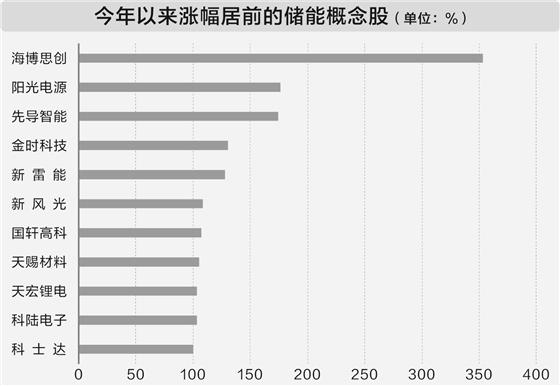 据证券时报·数据宝统计,年内储能概念股平均上涨62.87%,海博思创、阳光电源、先导智能等11股的股价实现翻倍,海博思创涨幅最高,年内累计上涨352.95%。公司是电化学储能系统解决方案与技术服务提供商,专注于储能系统研发创新,为“源一网一荷”全链条行业客户提供全系列储能系统产品及一站式整体解决方案,在国内储能市场占据较高份额,且在全球储能行业具有较强影响力,展现了储能行业的强劲实力。