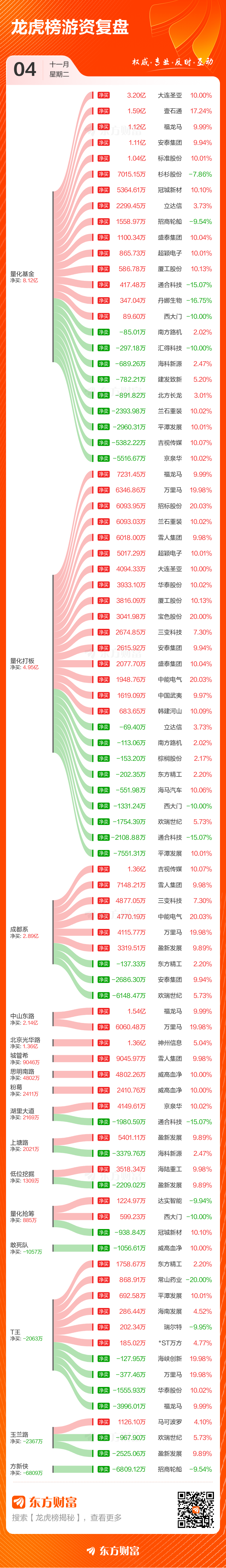 当天,游资席位表现活跃,净买入金额最高的个股为福龙马,“中山东路”席位净买入1.54亿元,游资动向值得投资者密切关注。此外,龙虎榜数据还揭示了其他多只个股的买卖情况,为投资者提供了宝贵的市场信息。