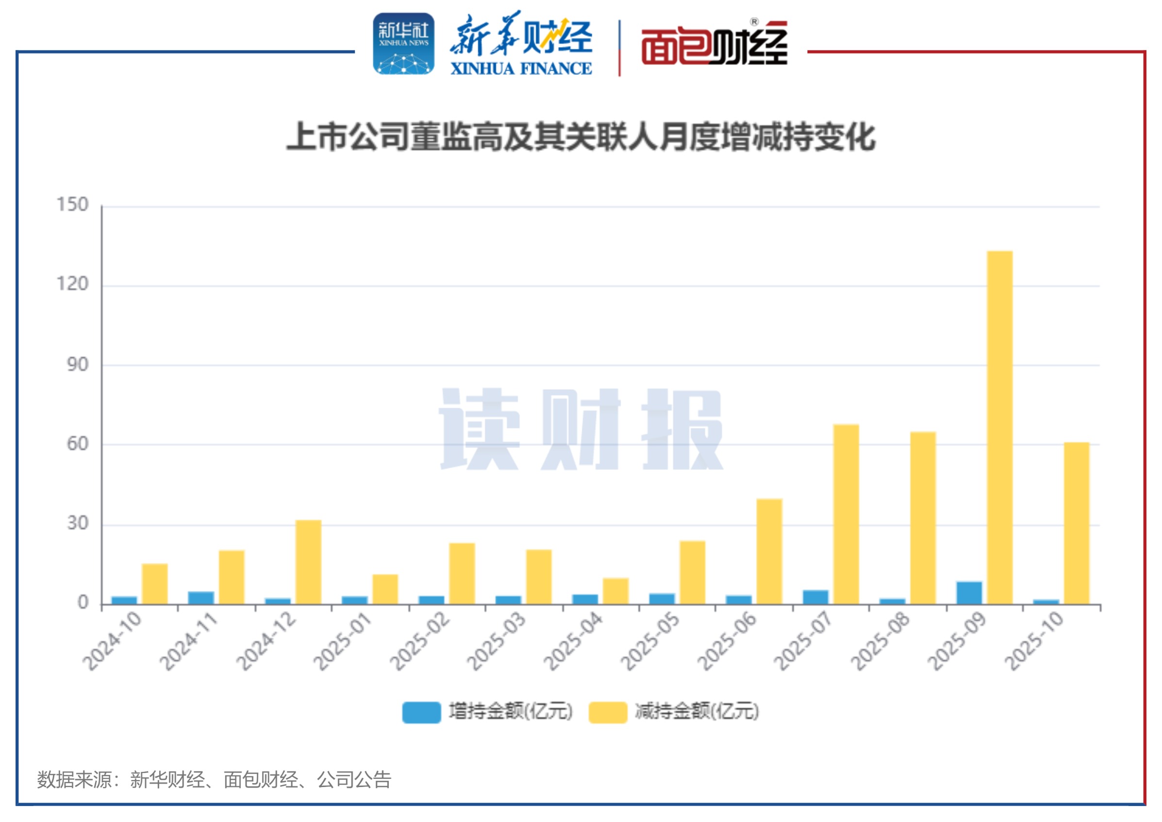 图1:2024年10月至2025年10月沪深两市上市公司董监高及关联人月度增减持金额变化