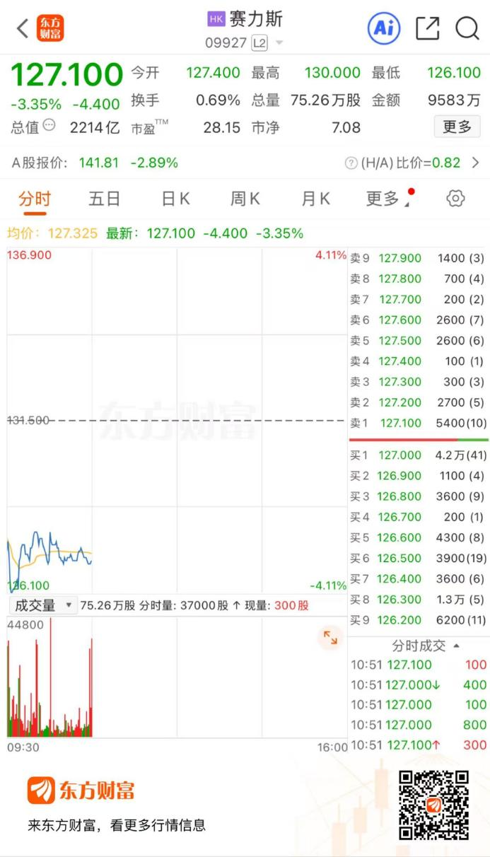 港股赛力斯上市表现引关注,A+H模式成焦点