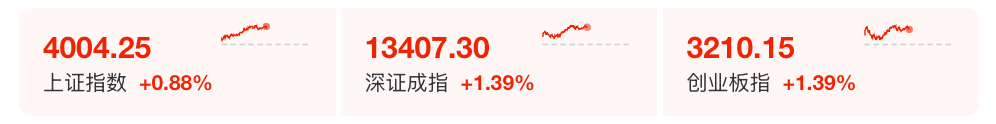 11月6日上午,A股三大股指集体高开高走,沪指重回4000点关口上方,科创50指数一度涨逾3%。截至午间收盘,沪指涨0.88%,深证成指涨1.39%,创业板指涨1.39%。