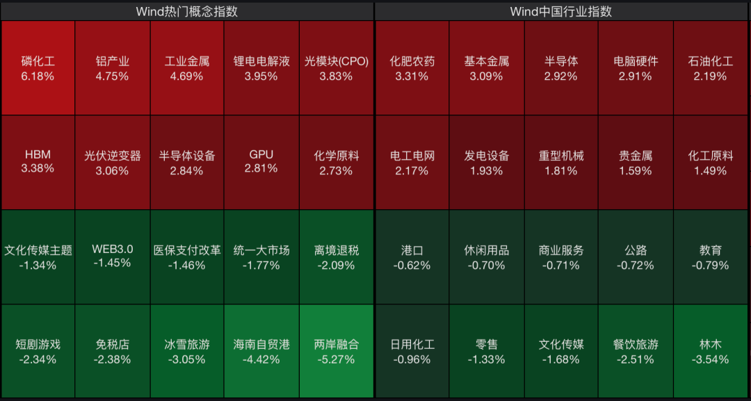 沪深两市半日成交额为1.32万亿元,较上个交易日半日放量高达1880亿元。个股涨多跌少,市场共2712只个股上涨,58只个股涨停,2550只个股下跌。从板块看,大科技行情回归,半导体芯片板块领涨,CPO、存储芯片、锂电电解液等概念板块走强,市场热点纷呈。