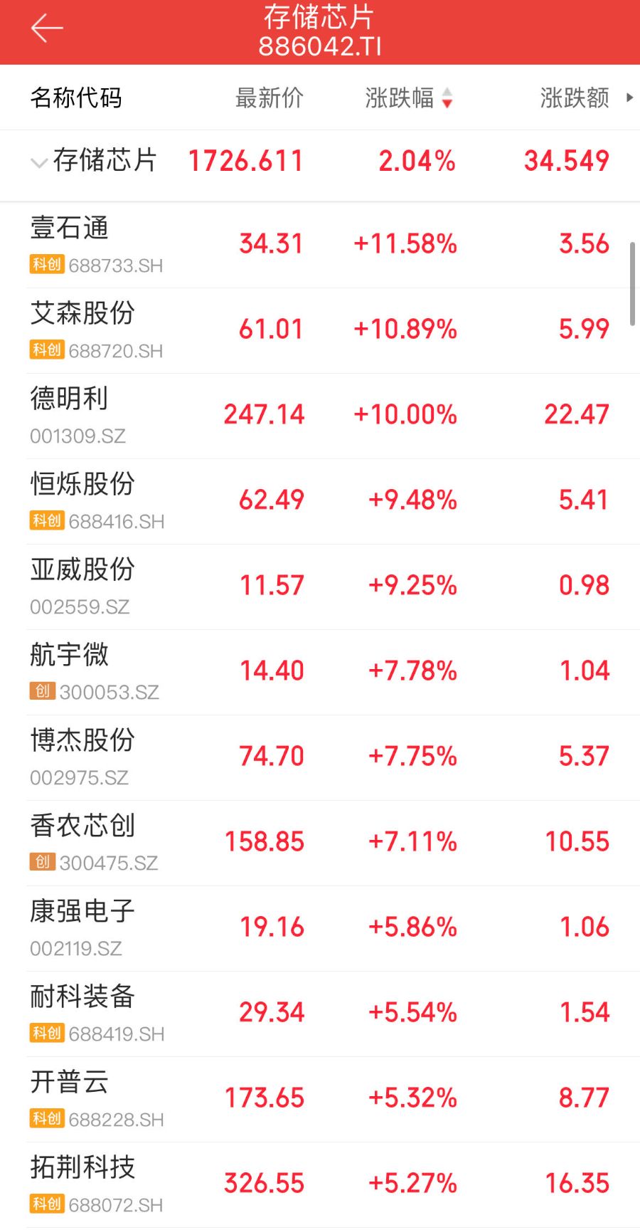 11月6日,A股存储芯片板块再度走强,存储芯片市场迎来新一轮上涨周期。截至午盘,壹石通(688733.SH)、艾森股份(688486.SZ)涨超10%,德明利(001309.SZ)强势涨停,香农芯创(300475.SZ)涨超7%,盘中股价最高触及163元/股,再创历史新高,康强电子(002119.SZ)、开普云( 688228.SH)、江波龙(301308.SZ)等多只个股跟涨,存储芯片行业景气度显著提升。