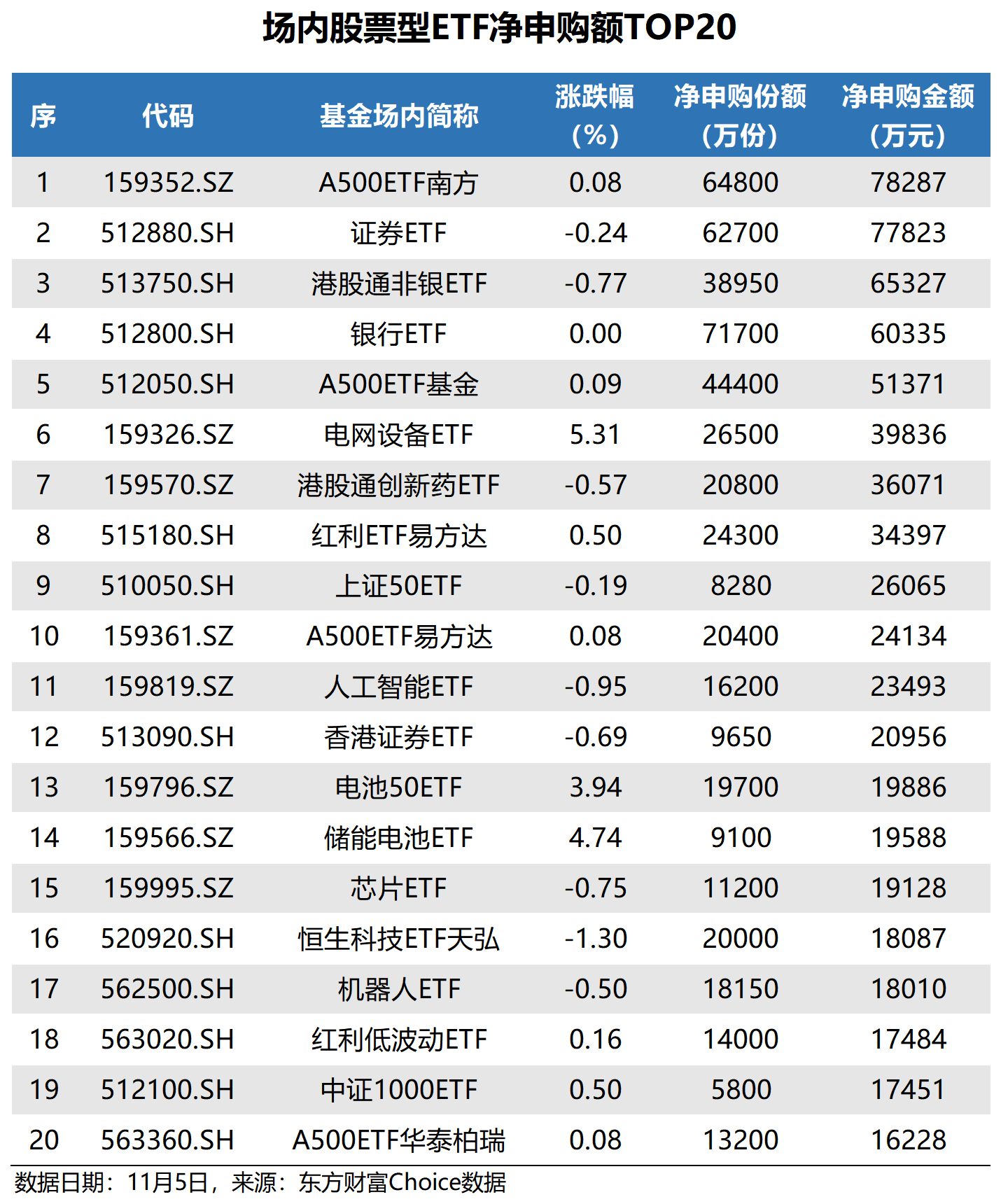 A500ETF南方净申购最多
