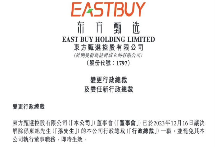 2023年12月,东方甄选宣布董事长俞敏洪兼任CEO职务,免去孙东旭执行董事、CEO职务。当时公告称,鉴于舆论风波,孙东旭职务变动反映了其对公司品牌及声誉管理不善;董事会认为其退出将更好维护股东利益,由经验更丰富的董事接管日常管理。该风波源于2023年12月10日东方甄选“吉林之行”后,董宇辉直播文案获好评,但小编回应称文案由团队共同完成,引发董宇辉粉丝不满,认为否认其贡献。