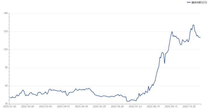 从资金面来看,寒武纪近期的融资余额规模仍在继续下降。截至11月5日数据,其目前融资余额140.45亿元,较近期高点(10月27日)共减少近20.7亿元,降幅接近12.9%。其中,寒武纪在10月28日遭融资客减持10.39亿元,融资净卖额位居历史第二高,仅低于今年9月4日(16.26亿元)。若从全年行情上看,其目前融资余额规模仍处于高位水平,显示出市场对其的持续关注。