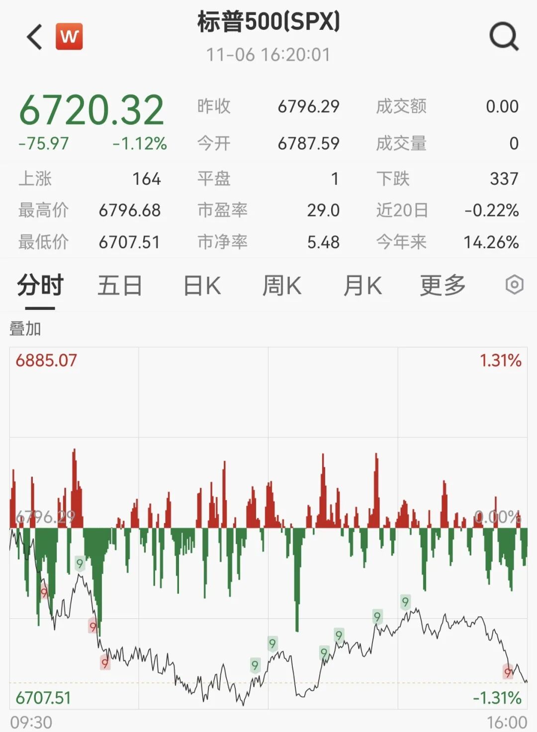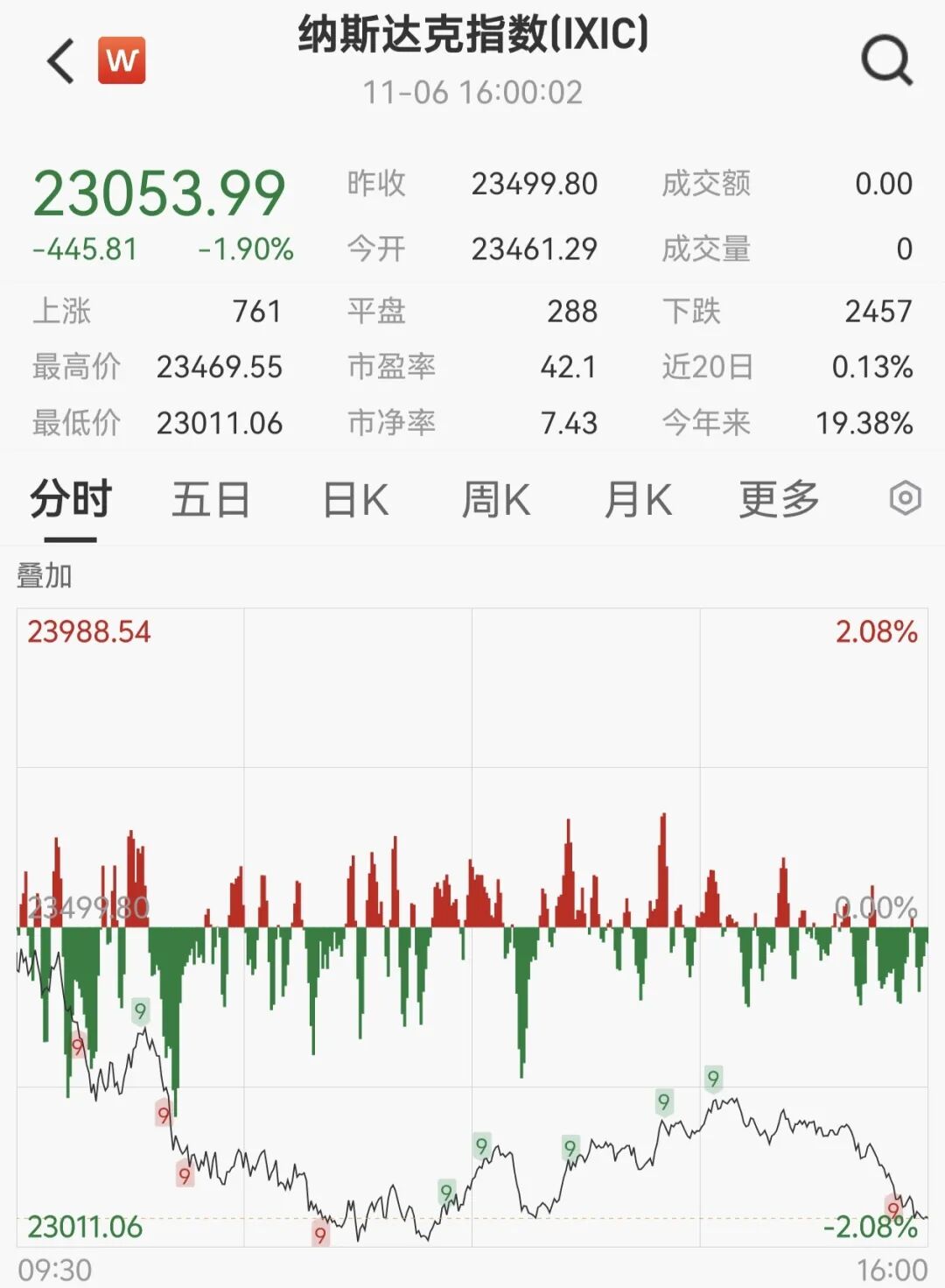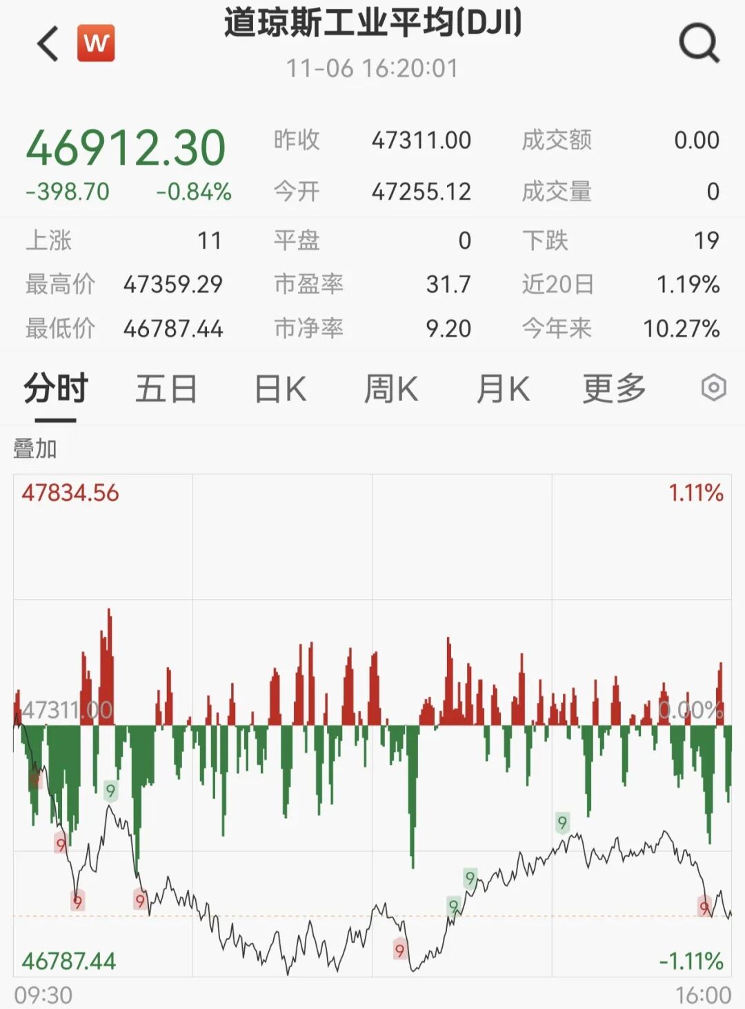 11月6日,美国三大股指全线收跌,道指跌0.84%,报46912.3点;标普500指数跌1.12%,报6720.32点;纳指跌1.9%,报23053.99点。赛富时跌5.30%,英伟达跌3.65%,亚马逊跌2.86%,领跌道指。