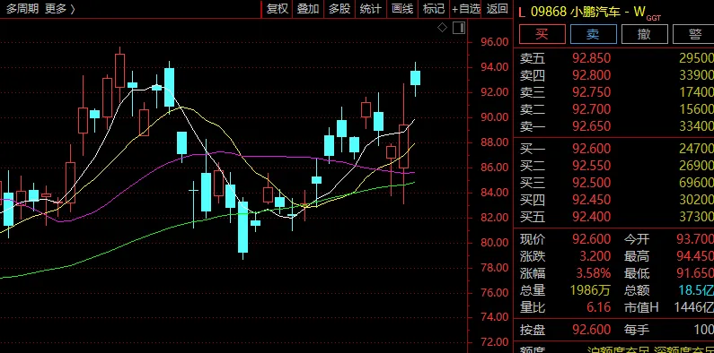 港股小鹏汽车盘中涨近5%。11月6日,小鹏X9超级增程开启预售。新车分为两个版本,其中,Max版预售价35万元起,Ultra版预售价37万元起,新能源汽车市场竞争激烈。