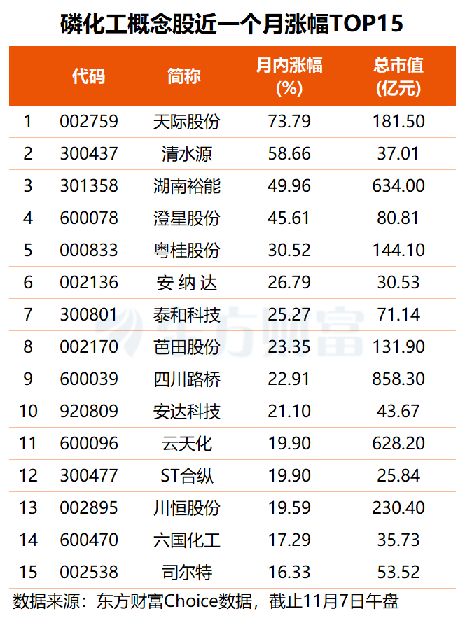 继昨日大涨后,磷化工概念股早盘再现强劲走势,清水源再度20cm涨停,收获2连板,澄星股份、天际股份、潞化科技等多股涨停,ST合纵、湖南裕能涨逾10%。磷化工行业受环保政策与新能源需求双重驱动,景气度持续提升。