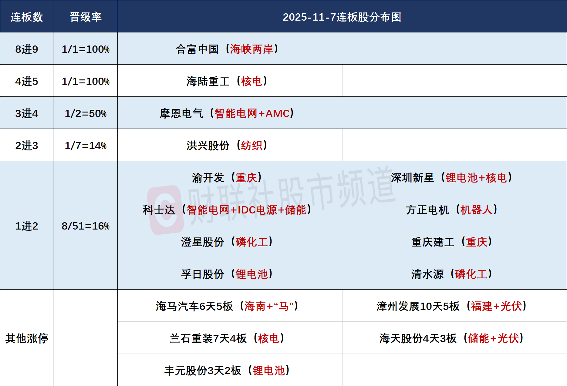 11月7日股市震荡,连板股活跃,磷化工商业航天受关注
