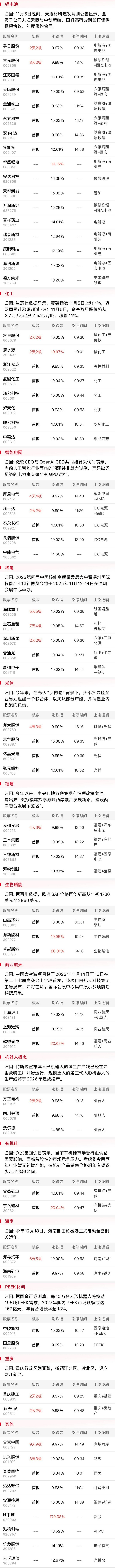 STCN报道显示,2025年三季度DRAM合约价同比飙升逾170%,部分内存条现货价格一个月内翻倍,涨幅远超黄金。存储芯片概念再度爆发,德明利、香农芯创、时空科技续创历史新高。据测算,单台AI服务器所需DRAM约为普通服务器的8倍,存储芯片的价格飙升仍基于AI需求的爆发式增长。不过受制于英伟达等美股科技股疲软,算力硬件端整体走势仍较为分化,受益谷歌发布第七代张量处理单元(TPU)“Ironwood”以及美股光模块龙头Coherent最新财报的超预期表现刺激,天孚通信一度涨近18%,长光华芯一度涨超10%创2年多新高。但板块内多数核心大票短期股价仍受制于上方沉重的套牢盘压制,且美股科技股近期的持续调整也对整个算力硬件端形成不利影响。