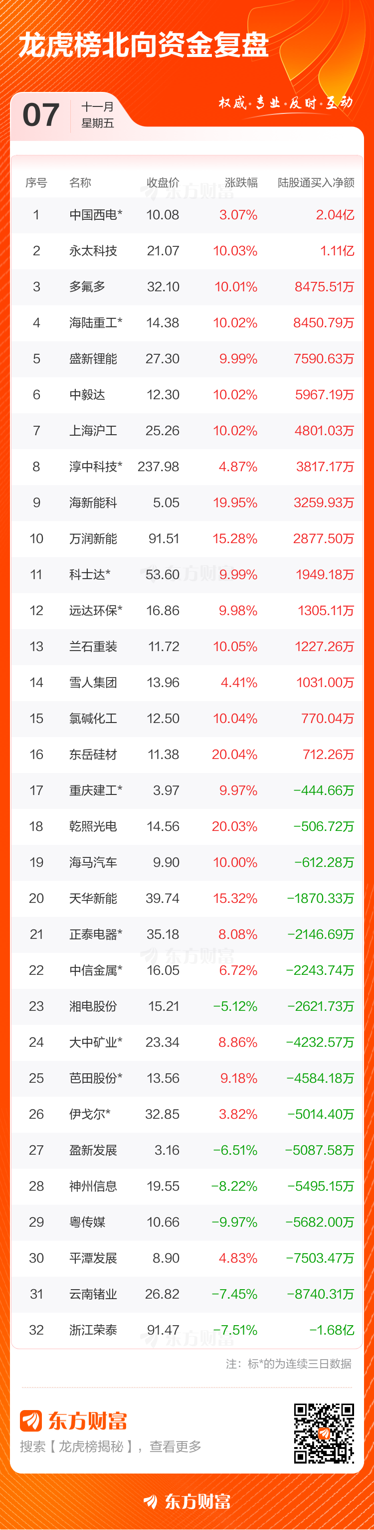 11月7日,A股市场共有73只个股荣登龙虎榜,总上榜成交额高达223.48亿元,这一数字彰显了市场的活跃度与投资者的热情。在众多上榜个股中,多氟多脱颖而出,成为净买入额最高的个股,其金额达到了惊人的6.53亿元,吸引了市场的广泛关注,成为当日股市的一大亮点。