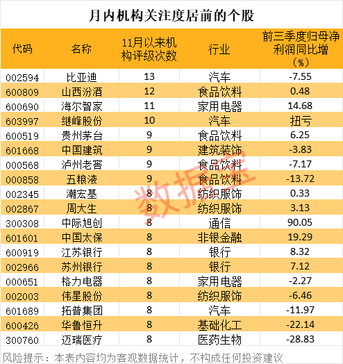 随着三季报的披露完成,市场对业绩增长股的关注度大幅增加,机构评级成为投资者关注焦点。