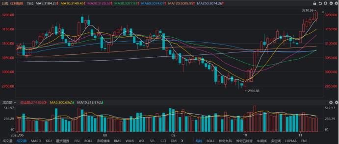 今日(11月10日),红利指数延续升势,截至收盘,其已连续6日上涨,上一次“6连涨”仅时隔近1个月。同时,红利指数近日稳步逼近年内最高点,以今日收盘点位较今年最高纪录统计,两者距离不足0.5%。目前,红利指数年线已成功转红,并小幅收涨近0.22%,展现出强劲的市场表现。