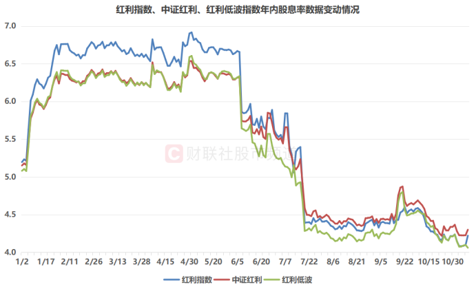 同时,在ETF市场,红利系ETF近期份额呈现增多降少,仅统计跟踪红利指数、中证红利、红利低波、红利低波100指数的ETF基金,截至11月7日数据,19只ETF中共有12只月内份额录得增长。其中,规模最大的红利系ETF——红利低波ETF(512890)月内份额增长近2.27%,红利低波动ETF(563020)、红利低波ETF(159525)份额增长双双超9%,ETF市场表现活跃。