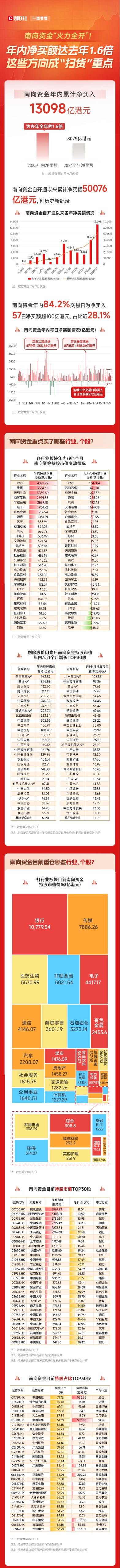 今年以来,南向资金持续流入港股市场,成为市场关注的焦点。截至11月11日,年内净买入规模已达1.3万亿港元,这一数字不仅远超去年全年净买额,更是达到了其1.6倍之多,显示出南向资金对港股市场的强烈信心。与此同时,自开通以来,南向资金的累计净买总额已突破5万亿港元大关,继续刷新着历史新高。其中,近15个交易日南向资金均为净流入,合计净买额高达972亿港元,进一步彰显了其积极布局港股市场的态势。从资金流向上看,银行、传媒、医药生物、商贸零售、非银金融成为南向资金年内重点布局的五大行业。近1个月以来,银行、石油石化、非银金融、通信、煤炭板块的持股市值增长尤为显著,吸引了众多投资者的目光。