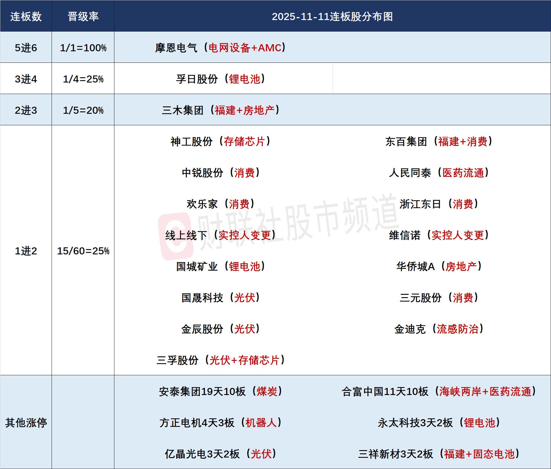 连板晋级率降至27.27%,但个股赚钱效应依旧不低,最高标摩恩电气大长腿分歧仍晋级6连板,20、30厘米弹性标的赚钱效应持续升温,神工股份等四只20厘米股实现连板晋级,此前走出3连板的清水源午后一度涨近18%。此外随着合富中国反包涨停走出11天10板,市场玄学炒作热度回暖,名字中包含美好寓意的欢乐家、人民同泰实现连板晋级,神马股份等多只“马字辈”个股也逆势涨停。在容量抱团持续低迷态势下,小微盘方向的情绪抱团仍有望维持高热度。