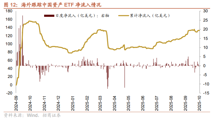 外资回流:美联储10月降息后,12月有望再降25bps,明年或累计降息75bps;结束缩表将缓解流动性压力,推动外资增配港股(10月海外ETF净流入9亿美元)。
